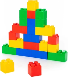 Große Kinder-Bausteinbox mit 24 Teilen der Marke Wader bietet sicheres und spaßiges Spielen schon ab 1 Jahr. Bunte und extra große Teile mit den Maßen 21,5 × 10,5 × 12 cm fördern die Feinmotorik, Kreativität und das Bauen ohne Verschluckungsrisiko.