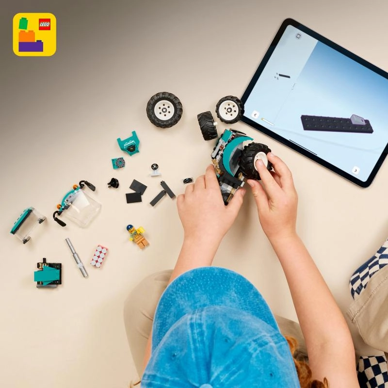 Der Bau macht mit der LEGO Builder App noch mehr Spaß: Modelle lassen sich vergrößern, in 3D drehen und der Fortschritt kann verfolgt werden. So fördern Kinder Feinmotorik, Vorstellungskraft und narratives Spiel, während sie realistische Details der Landmaschine entdecken.