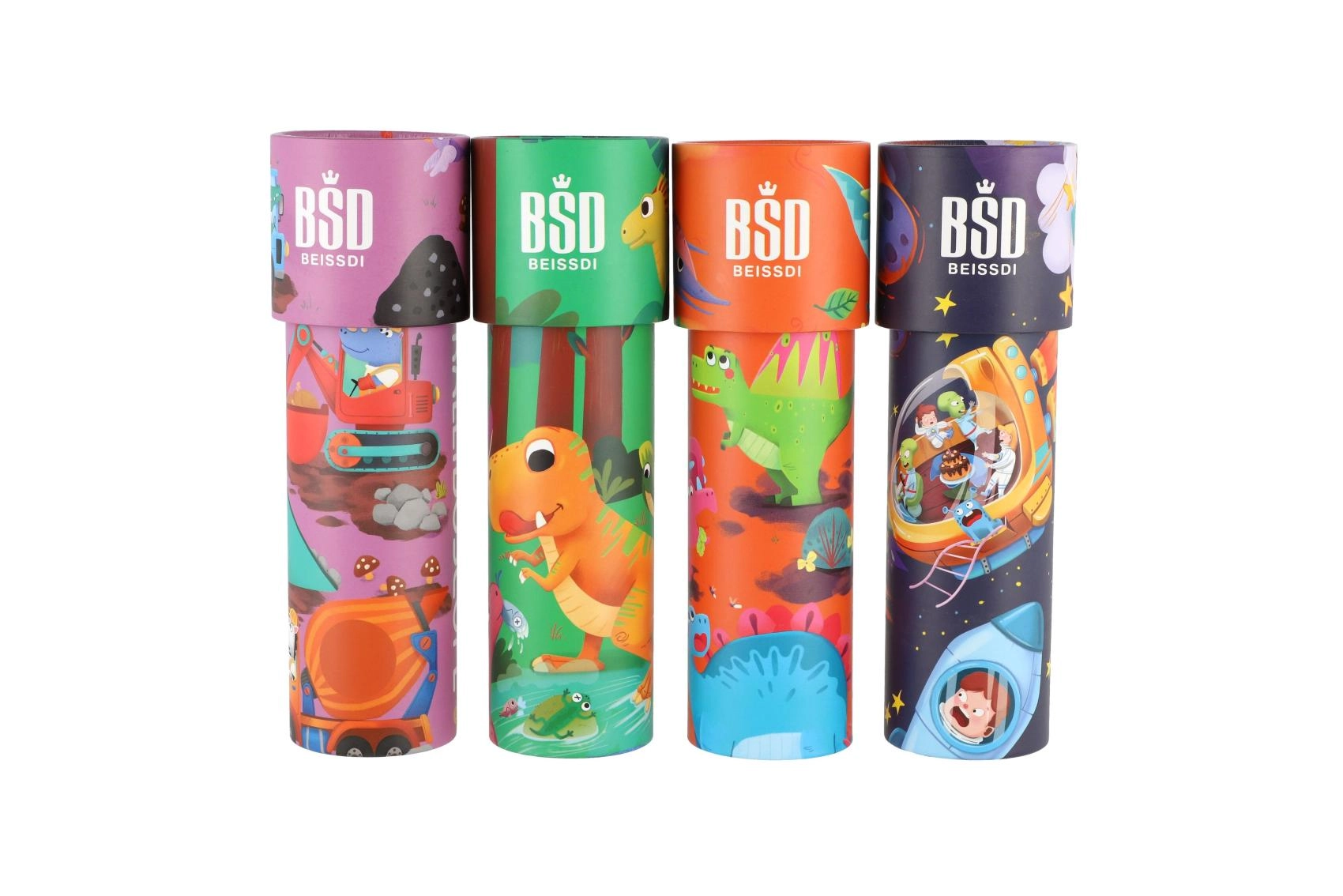 Lustige Dinosaurier-Illustrationen fördern die kindliche Fantasie und machen das Kaleidoskop zu einem attraktiven kleinen Geschenk.