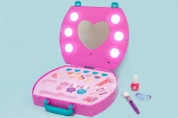 Enthält ein Kosmetiketui mit Licht und Spiegel, 12 unterschiedlich farbige Lidschatten, 3 Lidschattenpinsel, 2 Rouge-Töne, einen Rougepinsel, 3 verschiedenfarbige Nagellacke, Lipgloss, Lippenbalsam, eine Nagelfeile und eine Anleitung. Geeignet für Kinder ab 8 Jahren.