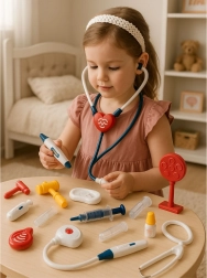 Das interaktive Arztkofferset ermöglicht Kindern, einen Besuch in der Praxis realistisch nachzuspielen. Bunte und sichere Accessoires sind für kleine Kinderhände konzipiert und motivieren zum selbstständigen Entdecken. Doktor spielen hilft, die Angst vor Untersuchungen abzubauen und lehrt Fürsorge für andere.