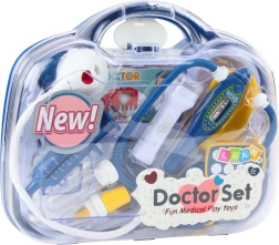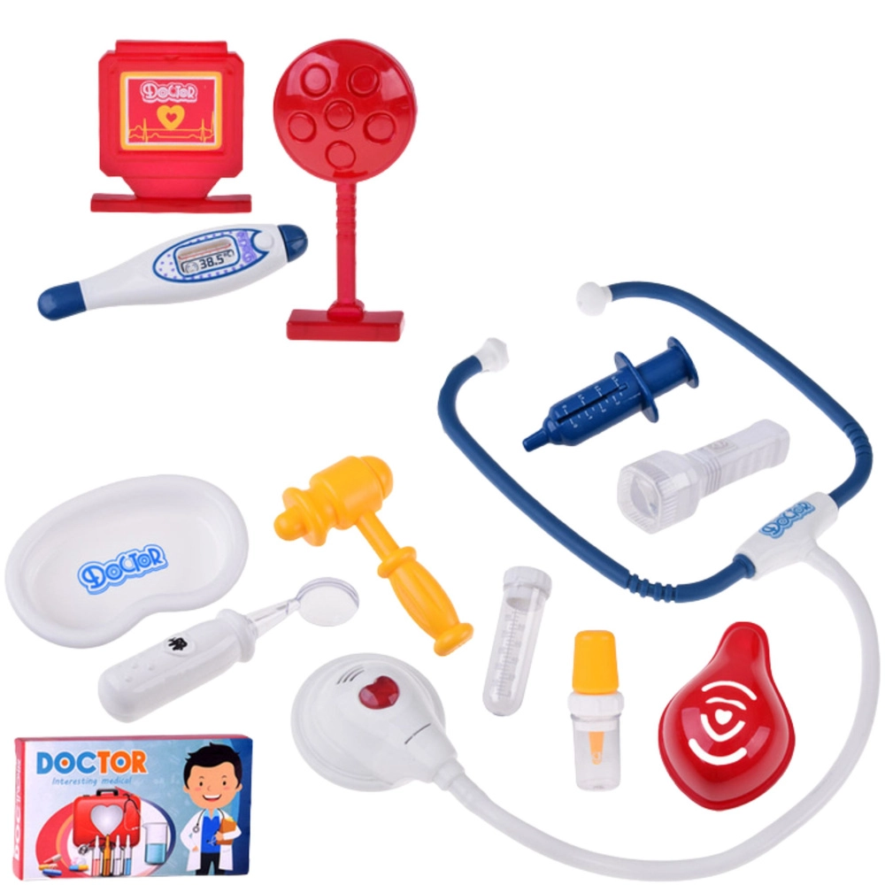 Enthalten sind beliebte Utensilien wie ein Stethoskop mit Licht und Sound, Thermometer, Spritze, Otoskop/Taschenlampe, Reflexhammer sowie ein Herzmonitor. Der leichte Koffer hält alles übersichtlich organisiert und ist leicht zu transportieren.