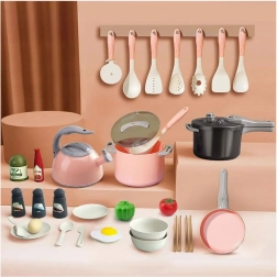Großes Kinder-Küchenset mit Töpfen und Zubehör, rosa, 32 Teile