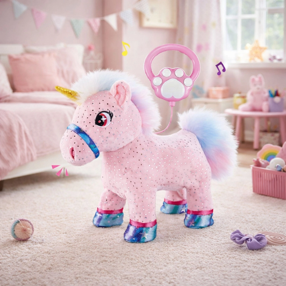 Das interaktive Einhorn ist eine großartige Wahl für Kinder, die es lieben, sich um Tiere zu kümmern. Das Spielzeug bewegt sich selbstständig, läuft und macht fröhliche Geräusche, wodurch es realistisch wirkt und natürlich ins Spiel einbezieht. Mit der Leine lässt sich das Einhorn leicht führen – ideal für Bewegung und Spaß zu Hause und unterwegs.