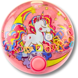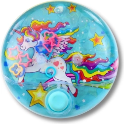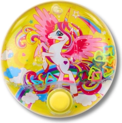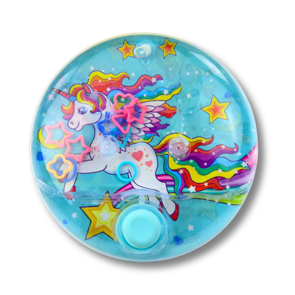 Beliebter Klassiker im modernen Look: Das runde Wasserspiel mit fröhlichem Einhornmotiv bietet Kindern eine ruhige, fesselnde Beschäftigung – ganz ohne Bildschirm und ohne Batterien. Durch Drücken des Knopfes erzeugst du einen Wasserstrom, der die Ringe in Richtung der Stifte befördert – ein einfaches Prinzip, das Spaß macht und Fähigkeiten fördert.