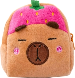 Diese niedliche Geldbörse/Minitasche aus weichem Plüsch verstaut Münzen, Scheine, Kopfhörer, Schlüssel und andere Kleinigkeiten. Das Design der schlafenden Capybara mit rosa Erdbeer-Mützchen und bestickten Details begeistert Kinder wie Erwachsene, die den süßen, kuscheligen Stil lieben.