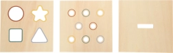 Verschiedene Einlegeplatten mit Öffnungen lehren Kinder, Formen und Farben zu erkennen und die Handbewegungen gezielt an die Aufgabe anzupassen.
