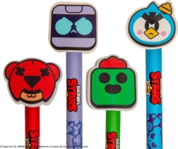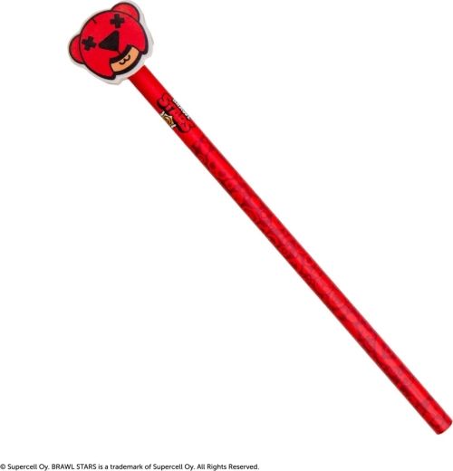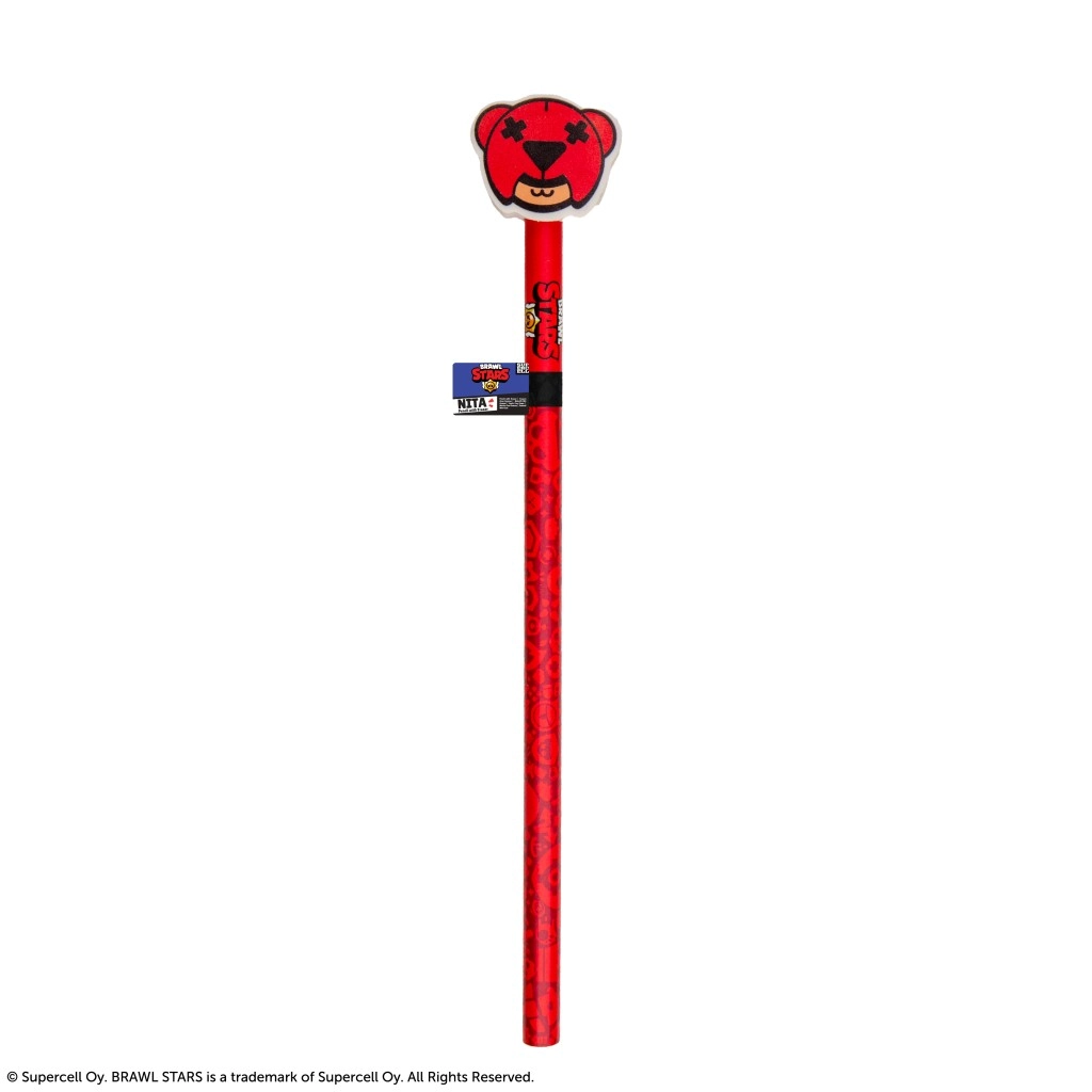Dieser lizenzierte BRAWL STARS Bleistift in leuchtendem Rot verbindet ein praktisches Schreibgerät mit verspieltem Sammeldesign. Oben befindet sich ein großer Radiergummi in Form eines Bärenkopfes, dem ikonischen Symbol der Figur Nita, ergänzt durch detaillierte schwarze Elemente für maximale visuelle Wirkung.