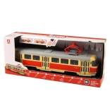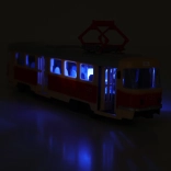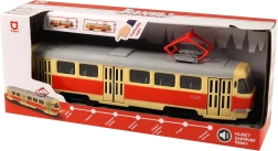 Die rot-weiße Straßenbahn kündigt die Stationen auf Tschechisch an, damit alle Fahrgäste wissen, wann sie aussteigen müssen. Die Straßenbahn meldet 7 Haltestellen: Hauptbahnhof, Aquapark, Zoologischer Garten, Sportstadion, Grund- und Vorschule, Theater, Einkaufszentrum. Die Türen werden manuell geöffnet, und als gelungener Bonus leuchtet der Innenraum nach dem Öffnen in blauem Licht. Jedes Mal, wenn sich die Türen öffnen, ertönt eine Ansage, und beim Schließen blinken sogar die Frontlichter. Die geräumige Straßenbahn ist aus Kunststoff gefertigt und fährt im Freilauf. Also einsteigen, die Spaßfahrt beginnt!