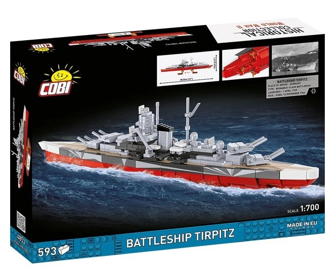 Genießen Sie den präzisen Bau und das Ergebnis des berühmten Schlachtschiffs TIRPITZ, zusammengesetzt aus passgenauen Bausteinen. Dank authentischer Drucke mit Emblemen und Markierungen ohne Aufkleber erhalten Sie ein langlebiges Sammlerstück, das auf dem beiliegenden Ständer mit Schiffsname und Maßstab hervorragend wirkt.