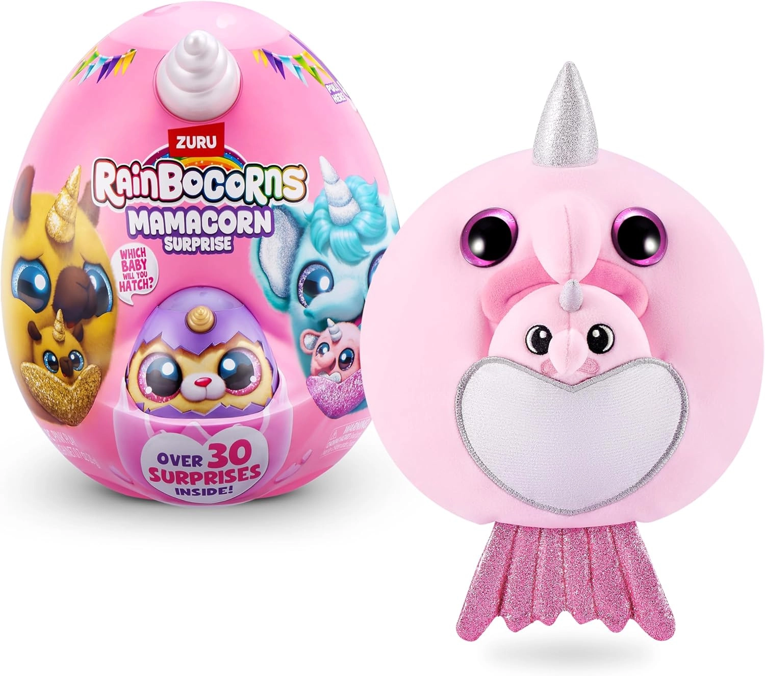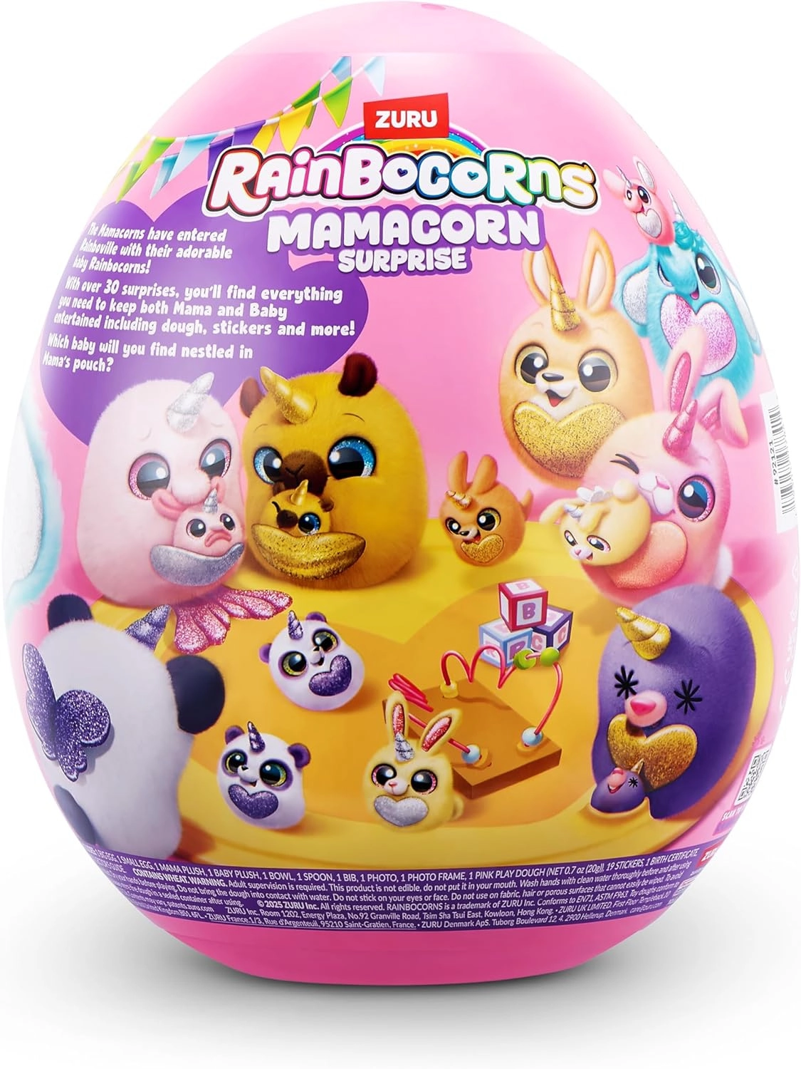 Im bunten Rainbocorns-Ei entdeckst du eine zauberhafte Mamacorn-Mama und ein verstecktes Baby – freu dich auf das Auspack-Erlebnis! Jede Ausgabe ist eine Überraschung, was das Sammeln noch spannender macht. Weiche Materialien und glitzernde Details laden zum Kuscheln und Rollenspiel ein.