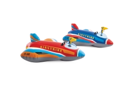 Die robuste Konstruktion aus hochwertigem PVC und der feste Haltegriff gewährleisten sichereres Spielen und bessere Kontrolle beim Fahren. Kräftige Farben in Rot, Blau, Gelb und Weiß sowie die Aufschriften AIRSTRIKE und F-107 verleihen dem Spielzeug eine attraktive Optik, die Kinder sofort begeistert.