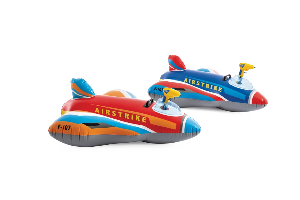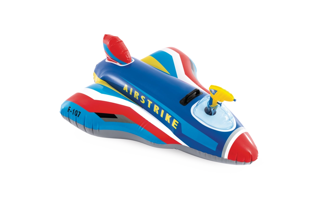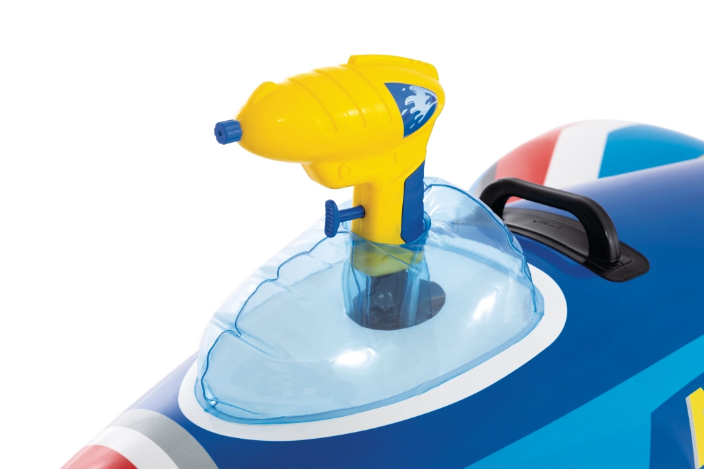 Der aufblasbare Jet AIRSTRIKE F-107 verwandelt jeden Pool in einen actiongeladenen Flugplatz. Dank der breiten Flügel und des Heckstabilisators ist er sehr stabil und für jüngere Kinder bequem. Die integrierte Wasserpistole im Cockpit ermöglicht einfaches Spritzen und sorgt für endlosen Spaß.