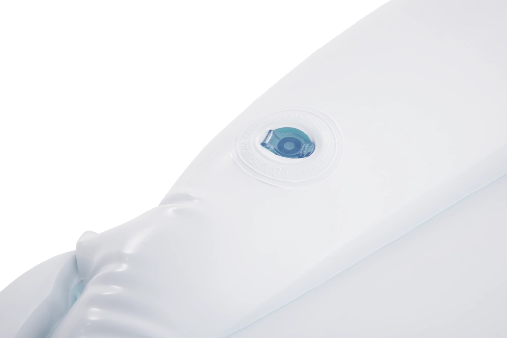 Die Liege besteht aus robustem PVC mit einer glatten, leicht abwaschbaren Oberfläche. Ein Sicherheitsventil erleichtert das schnelle Auf- und Abpumpen und minimiert den Luftverlust. Dank der stabilen Konstruktion und des weißen unteren Rands ist die Liege sowohl für Pools als auch für ruhige Gewässer geeignet.