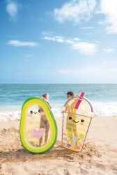 Die aufblasbare Luftmatratze Boba Buddy bringt den ikonischen Look des beliebten Bubble-Tea-Getränks – inklusive Deckel, pinkem Trinkhalm und bunten „Perlen“ im unteren Bereich. Transparente Paneele wirken leicht und effektvoll, sodass sie auf der Wasseroberfläche besonders gut zur Geltung kommt.