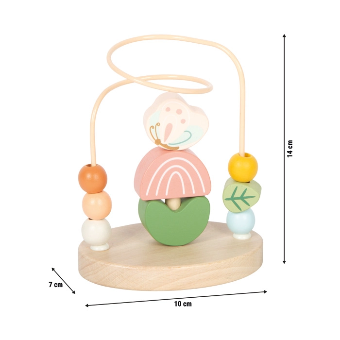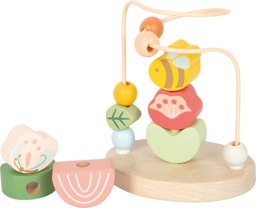 Das Motorik-Labyrinth Wiese von small foot bringt Kindern Freude am Entdecken und Lernen. Die stabile Metallschleife mit farbigen Holzperlen ermöglicht ein flüssiges Verschieben, das die Feinmotorik und einen präzisen Griff natürlich fördert. In der Mitte befindet sich ein faltbares Minigame mit sechs Holzteilen (Biene, Schmetterling, 2 Blütenblätter, 2 Blätter), das Konzentration und logisches Denken unterstützt.