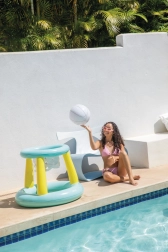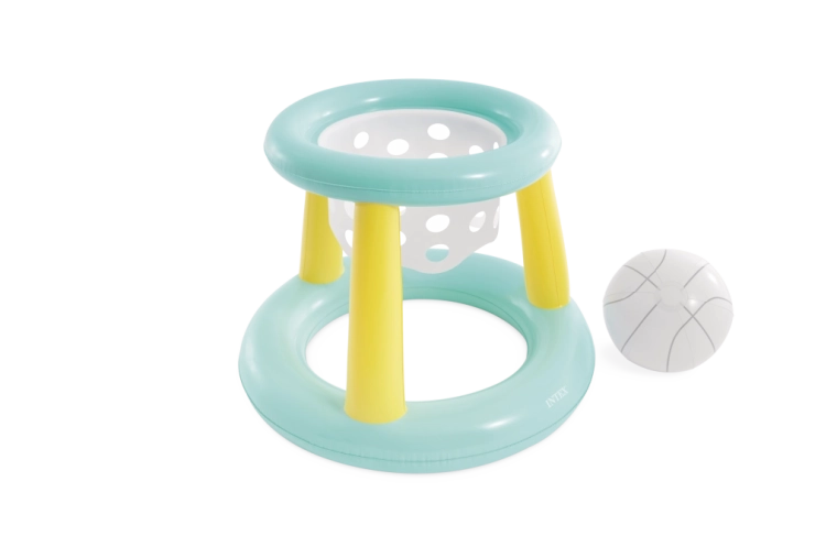 Dank des Schnellventils lässt sich der Korb leicht auf- und abpumpen und problemlos transportieren oder verstauen. Im Lieferumfang enthalten ist ein aufblasbarer Basketball, der schwimmt und sich ideal zum Werfen und Fangen im Wasser eignet – perfekt für Familienduelle und Freundschaftsspiele.