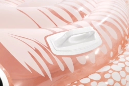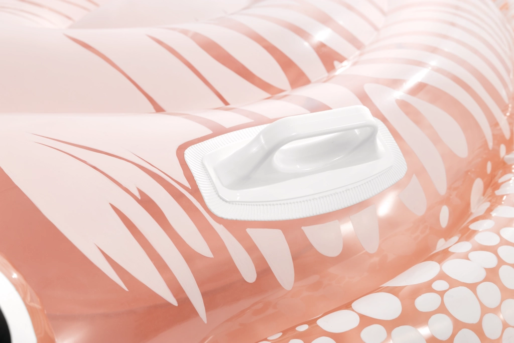 Die Liege ist für Kinder ab 6 Jahren konzipiert und legt Wert auf Sicherheit: zwei stabile Kunststoffgriffe verbessern die Stabilität beim Aufsteigen und Schwimmen, und zwei separate Luftkammern mit Sicherheitsventilen erleichtern das Auf- und Abpumpen und reduzieren das Risiko von Luftverlust. Größe und ergonomische Form bieten ausreichend Platz für bequemes Liegen und unbeschwertes Relaxen auf dem Wasser.