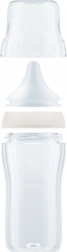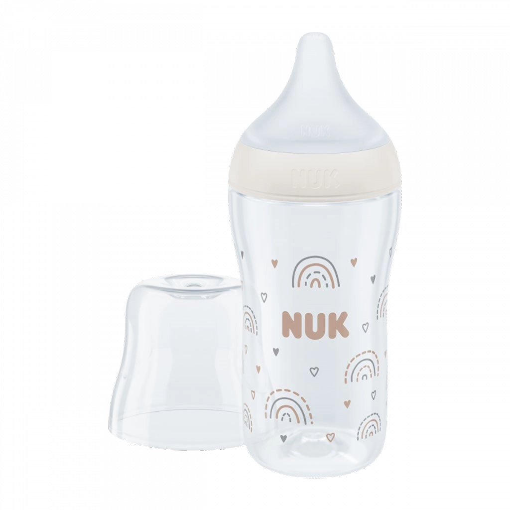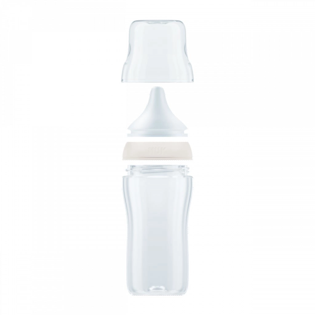 Die Glasflasche NUK Perfect Match imitiert das natürliche Stillgefühl – sie hat eine spezielle orthodontische Form, modelliert nach der mütterlichen Brustwarze, bietet ausreichend Raum für die Bewegung von Zunge und Kiefer sowie eine breite Lippenauflage, die an die Haut der Mutter erinnert. Dank des verbesserten Anti Colic Air System ist der Milchfluss natürlich und ruhig, sodass das Baby entspannt trinkt, ohne unnötig Luft zu schlucken.