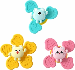 Die Spinner lassen sich leicht auf glatten Oberflächen befestigen – vom Hochstuhl bis zu den Fliesen in der Badewanne. Das Spielzeug bleibt an Ort und Stelle und dreht sich gleichzeitig sanft.