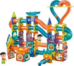 Das Set MAGIC MAGNETIC BLOCKS verbindet kreatives Spiel und Lernen. Bunte, transparente Teile, Röhren, Kurven und Rutschen ermöglichen originelle Murmelbahnen, die sich dank der magnetischen Verbindungen beliebig erweitern und umbauen lassen. Das Spiel fördert Hand-Auge-Koordination, Problemlösen und Teamarbeit.