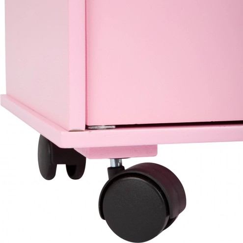 Drehbare Rollen ermöglichen ein sanftes und sicheres Bewegen des Schranks im Kinderzimmer oder Spielbereich.
