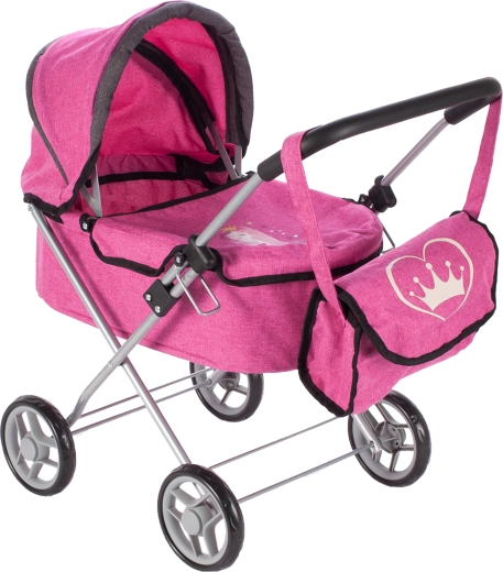Dank der kompakten Abmessungen lässt sich der Wagen leicht führen und verstauen. Teil des Sets ist auch eine praktische Tasche für Kleinigkeiten mit verstellbarem Schulterriemen, damit die kleine Mama alles Nötige griffbereit hat.
