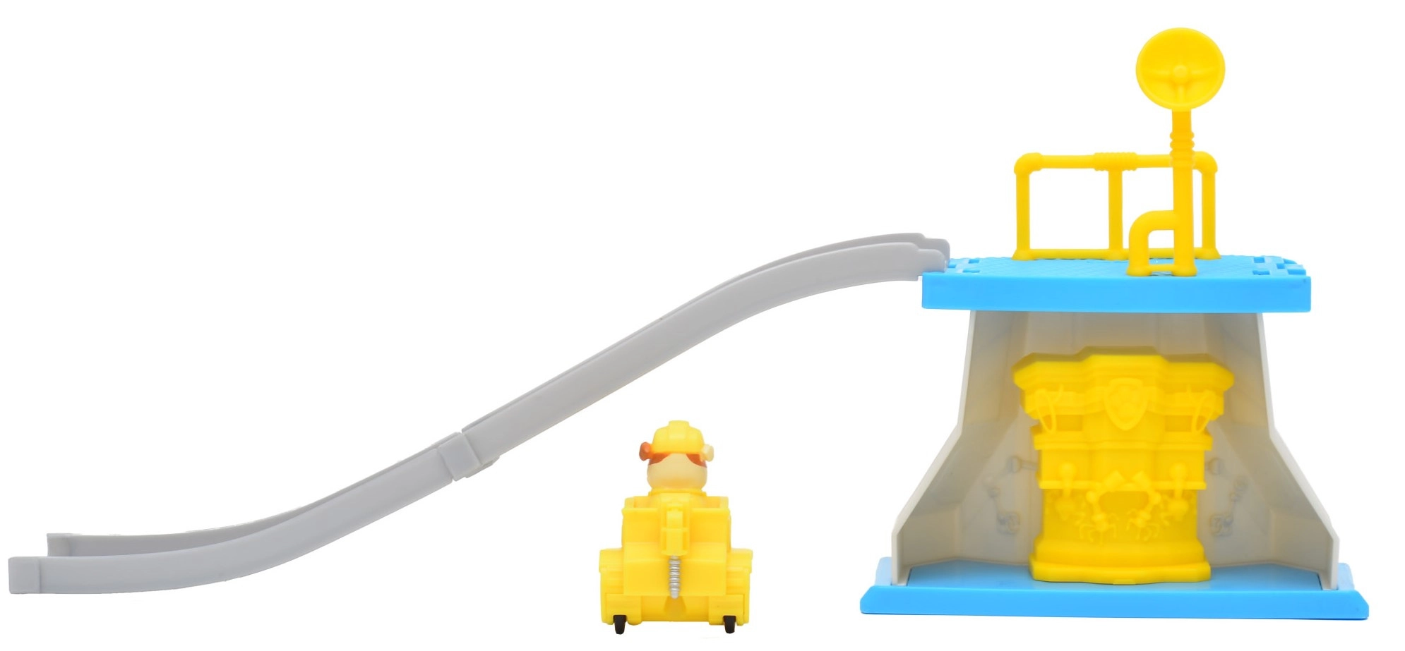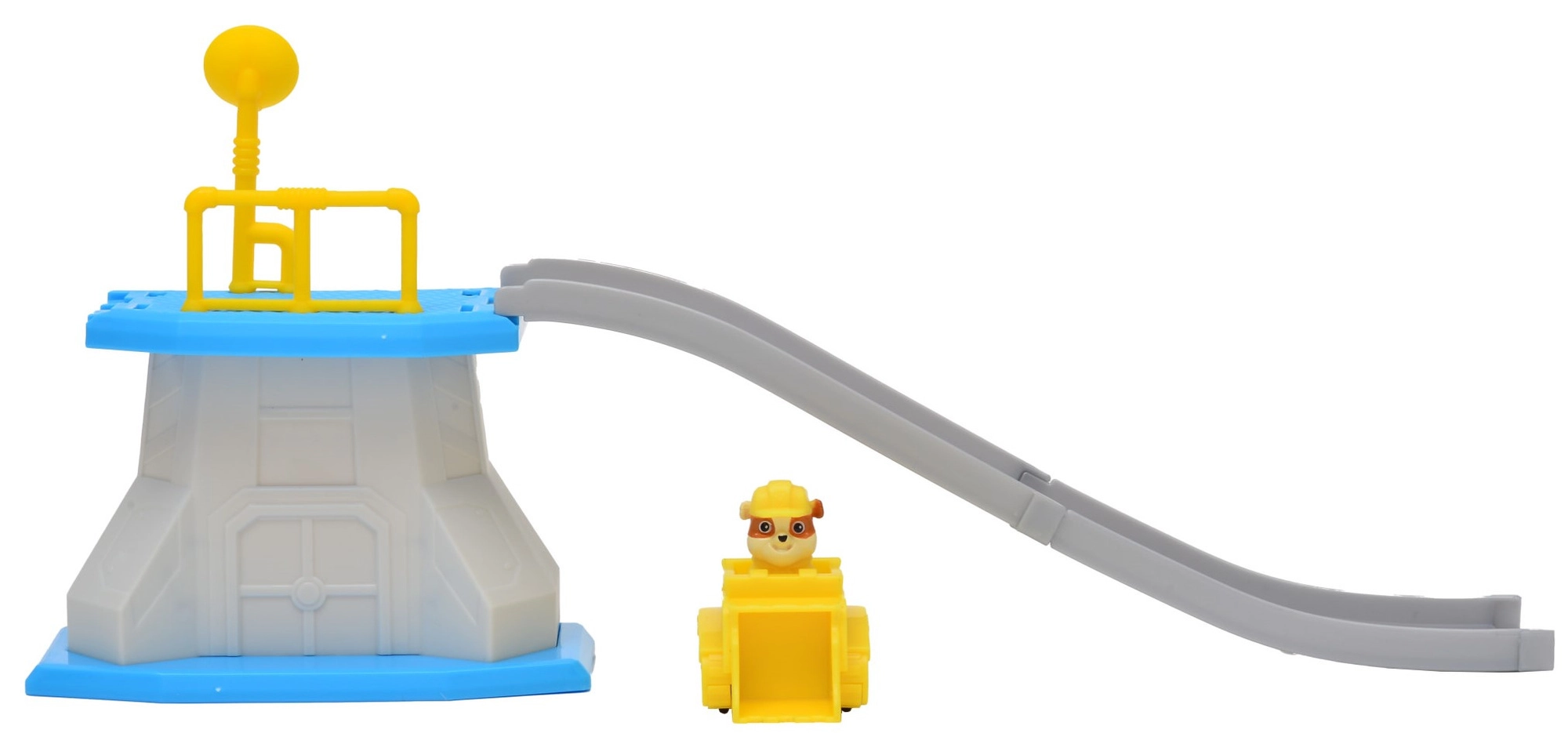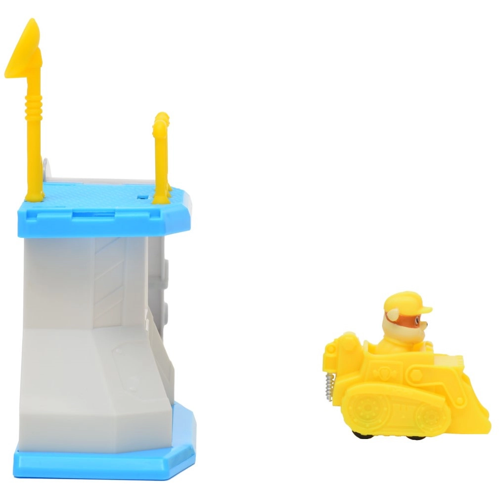 Enthalten ist ein gelber Bulldozer mit integrierter Rubble-Figur – ideal für den Schnellstart von der Plattform und zum Nachspielen von PAW PATROL-Geschichten.