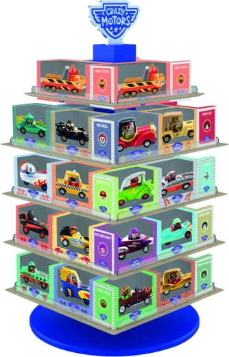 Praktischer Drehständer für die Autos der Serie Crazy Motors sorgt für übersichtliche Aufbewahrung und stilvolle Präsentation Ihrer Sammlung. Eine kompakte Lösung für kleine und große Sammler, die Platz spart, die Kollektion übersichtlicher macht und die einfache Auswahl des Lieblingsmodells ermöglicht.