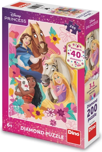 Entdecke die Magie des Puzzelns mit einem wunderschönen Motiv von Prinzessinnen und ihren tierischen Freunden. Das Dino Puzzle aus der Diamond Puzzle Edition verbindet das beliebte Puzzeln mit kreativem Verzieren durch glitzernde Steinchen, wodurch das fertige Bild wunderschön erstrahlt.