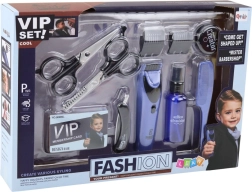 Im Set ist alles für kreatives Rollenspiel enthalten: Haarschneider, 2 Scheren, Rasierklinge, 2 Aufsätze, 2 Dosen für „Kosmetik“ und ein Kamm.