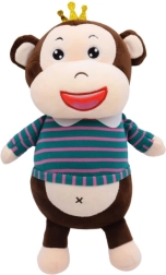 Dieses niedliche Plüschäffchen mit Krönchen macht jedes Kind glücklich. Der weiche Körper, sanfter Plüsch und die sicheren gestickten Gesichtszüge sorgen für gemütliches Kuscheln und sicheres Spielen. Das stylische, gestreifte T‑Shirt verleiht dem Spielzeug einen zauberhaften Look, den Kinder lieben.