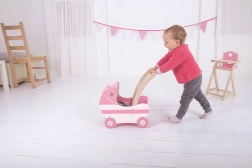 Holzpuppenwagen in Rosa