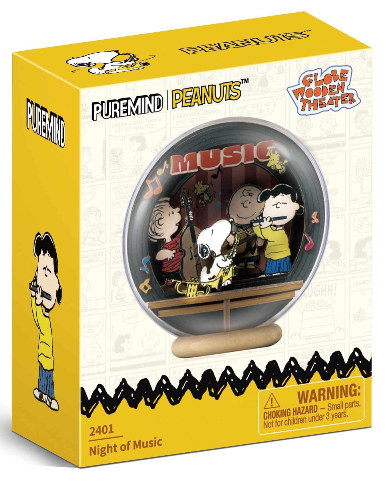 Dieses lizenzierte DIY-Set bringt die Atmosphäre der Comicwelt PEANUTS in ein elegantes Holzmodell. In einer Acrylkuppel entsteht eine Mini-Szene Night of Music, in der Snoopy und seine Freunde ein abendliches Konzert spielen. Dank der transparenten Abdeckung ist die Szene von allen Seiten sichtbar und erzeugt einen räumlichen 3D-Effekt.