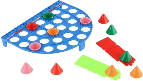 Punktestreifen auf dem Brett sorgen für eine übersichtliche Wertung. Ein Treffer in einen Streifen mit derselben Farbe wie das Hütchen bedeutet die doppelte Punktzahl.