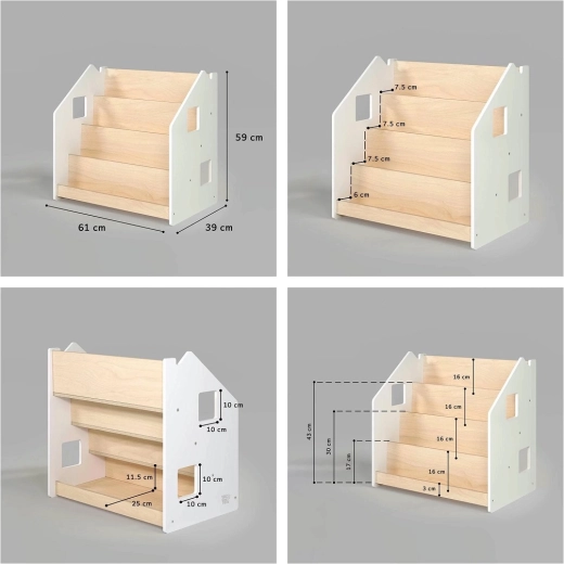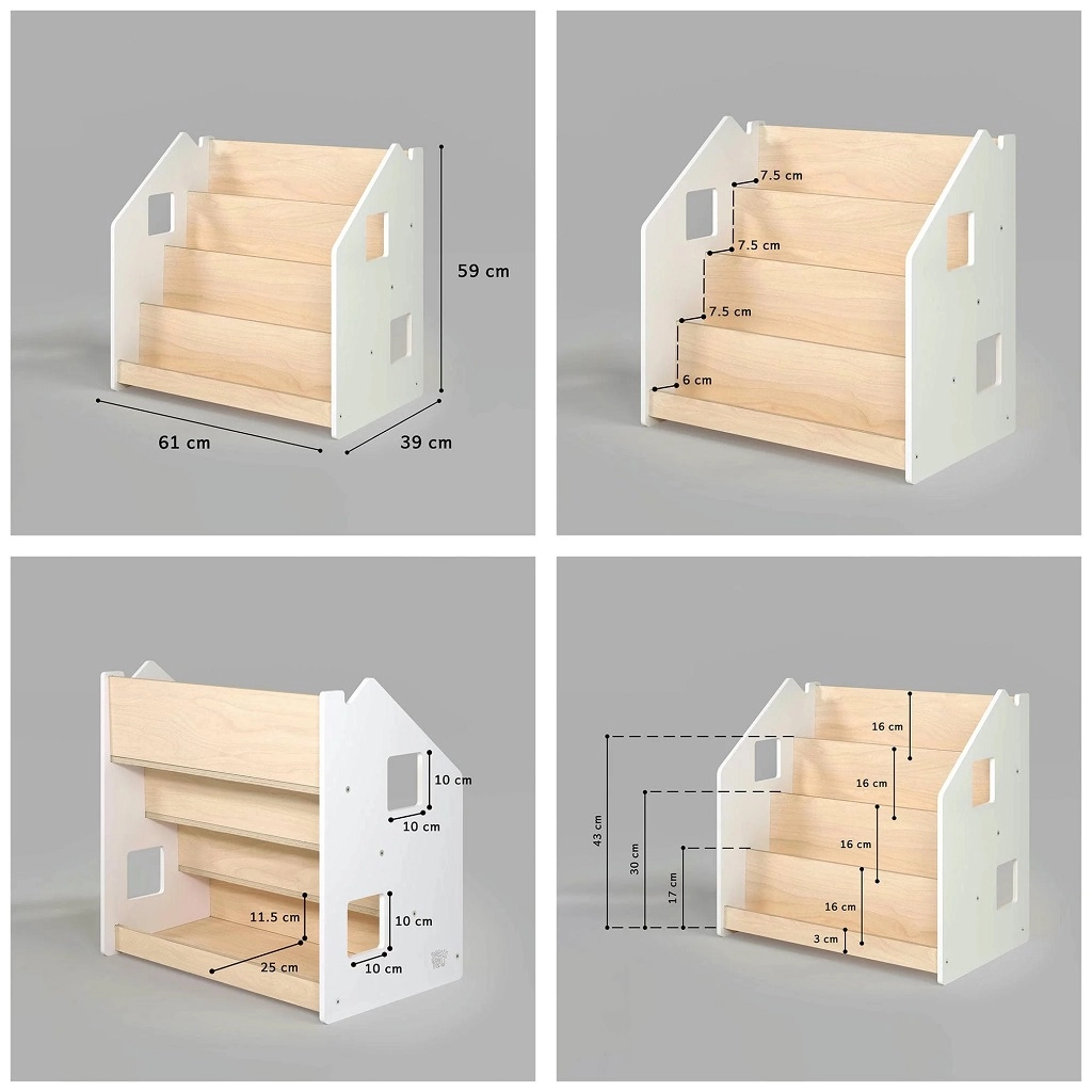 Das BusyKids-Bücherregal ist so gestaltet, dass Kinder die Buchcover gut sehen und Bücher selbstständig auswählen und wieder einräumen können. Mit seinem klaren, zeitlosen Look passt es hervorragend ins Kinderzimmer, Spielzimmer oder Wohnzimmer. Die vorderen Fächer halten Lieblingsbücher griffbereit, während der hintere Stauraum weitere Bücher oder Spielzeug aufnimmt.