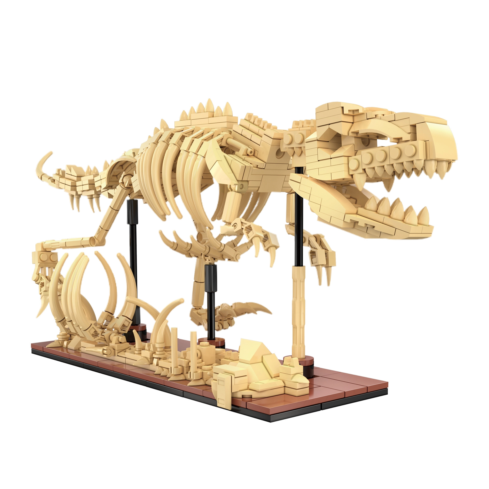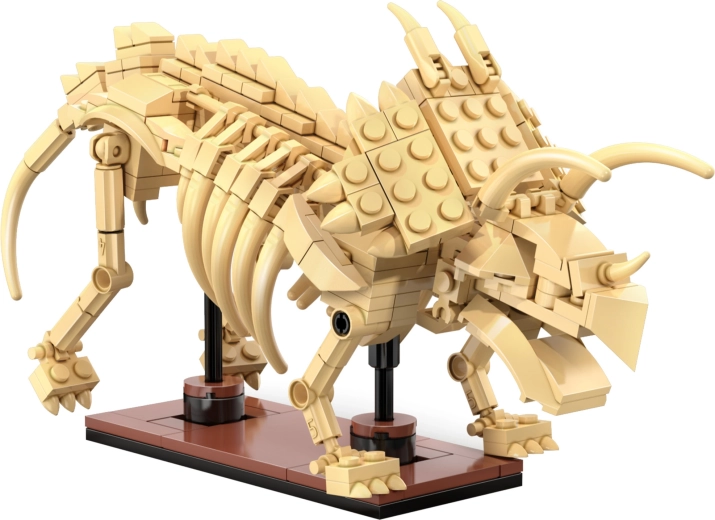 Bauen Sie die detailreichen Skelette von Triceratops, Stegosaurus und Velociraptor aus 825 Teilen und präsentieren Sie sie auf Ständern. Jedes Modell verfügt über bewegliche Gelenke für dynamische Posen.