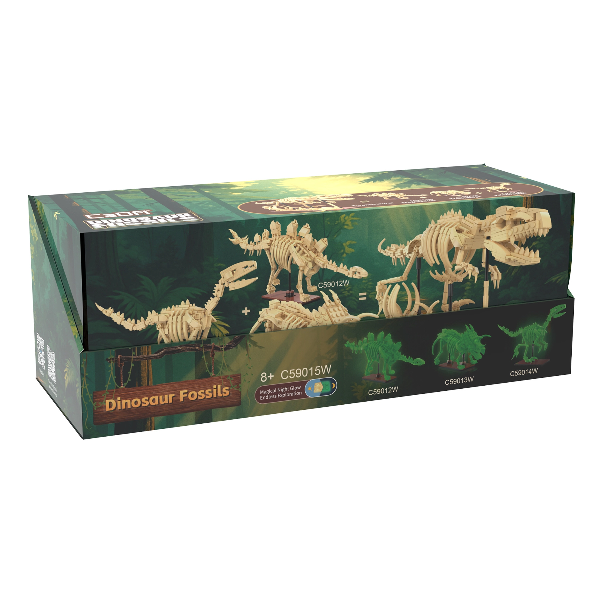 Die „Knochen“ leuchten im Dunkeln und die Modelle stehen auf stabilen Sockeln. Perfekt für Sammler, Paläontologie-Fans und als stilvolle Dekoration.