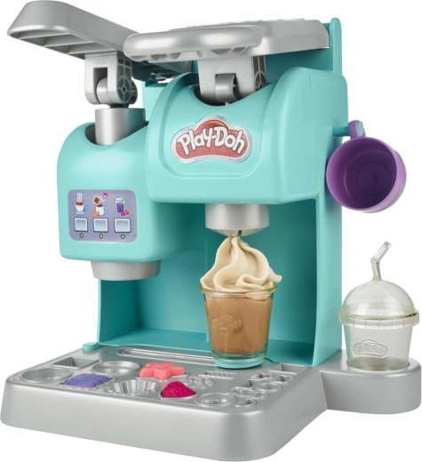 Das Set ist wie ein kleines Café gestaltet und fördert Kreativität, Feinmotorik und Rollenspiel. Mit der interaktiven „Kaffeemaschine“ füllen Kinder Becher mit PLAY-DOH, drehen und schieben sie zur „Topping“-Station, wo sie luftige „Sahne“ und weitere Dekorationen gestalten. Dank regenbogenfarbener, glitzernder und zweifarbiger Knetbecher sind ihre Kreationen stets einzigartig.