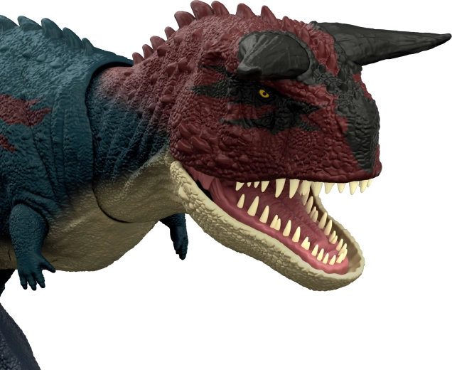 Strukturierte Haut, Hörner und filmische Farben inspiriert von Jurassic World machen den Carnotaurus zu einer fesselnden Figur zum Spielen und Ausstellen.