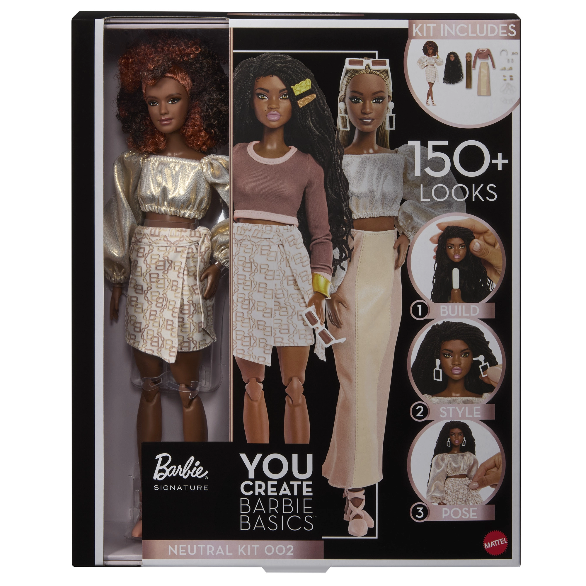 Tauschen Sie die Köpfe mit unterschiedlichen Frisuren ganz einfach aus – von rotbraunem Afro-Volumen über lange Braids bis hin zu glattem, hellblondem Haar – und personalisieren Sie die Puppe nach Stimmung.