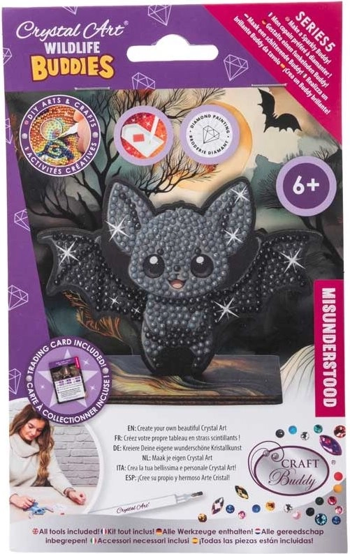 Dieses kreative CRYSTAL ART Set mit Fledermausmotiv ist eine wunderbare Möglichkeit, zu entspannen und zugleich eine schöne, funkelnde Deko zu gestalten. Dank klar gekennzeichneter Vorlage und selbstklebender Oberfläche ist das Aufbringen der Steinchen intuitiv und für Kinder wie Erwachsene geeignet.