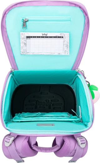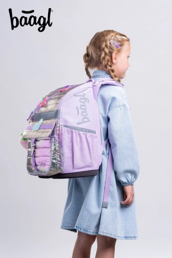 Die komplette Schulausstattung im einheitlichen Lavender-Design kombiniert Komfort, Sicherheit und durchdachte Organisation. Der ergonomische Schulranzen BAAGL Zippy mit dem verschiebbaren ERGO ADJUSTABLE System passt sich der Statur des Kindes an und hält dank verstärktem Korpus, stabilem Boden und wasserabweisendem Material auch anspruchsvolle Schultage aus. Enthalten sind ein geräumiges Federmäppchen, ein Kordelzugbeutel für den Sportunterricht, eine Geldbörse für Kleinigkeiten und eine Schutzweste/Schürze für Schulprojekte.