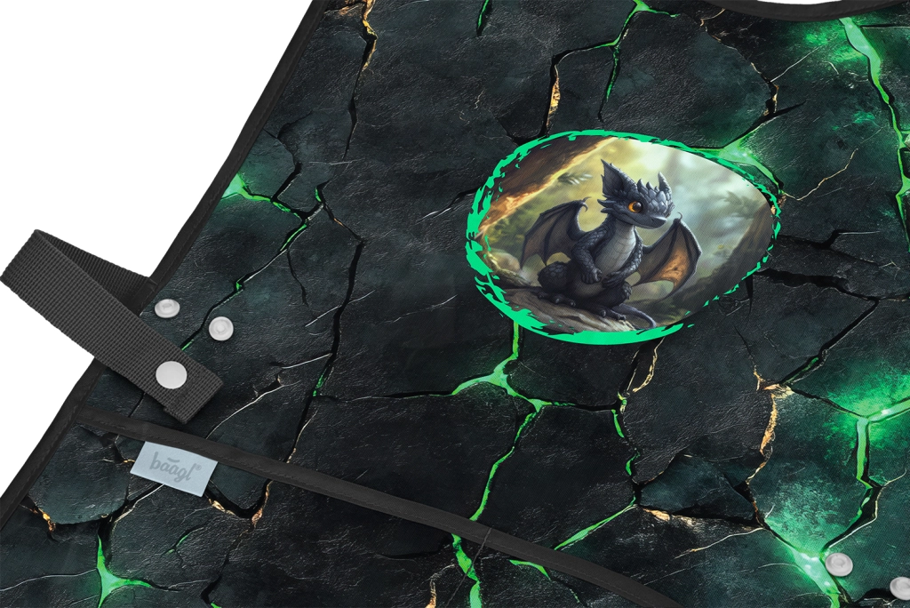 Durchdachte Details wie zwei Fronttaschen bieten Platz für Pinsel, Kleber und andere Materialien. Das beliebte Drachenmotiv begeistert Kinder und fördert ihre Kreativität.