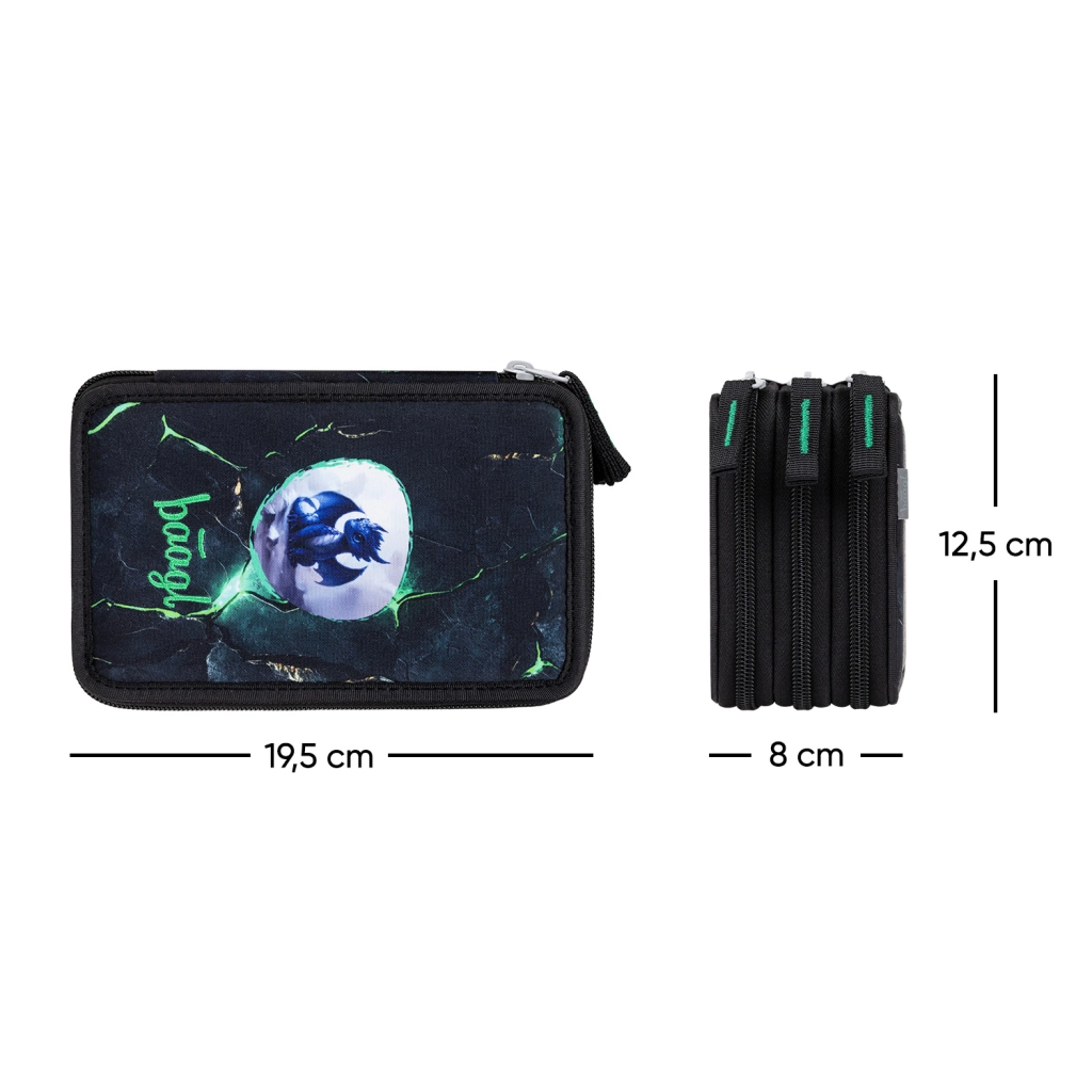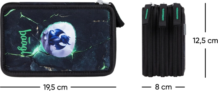 Entdecken Sie das praktische und robuste dreistöckige BAAGL-Federmäppchen mit markantem Drachenmotiv. Drei separate Reißverschlussfächer sorgen für eine übersichtliche Aufbewahrung von allem, was Schüler benötigen – von Buntstiften und Markern bis hin zu Lineal und Radiergummi. Markenreißverschlüsse von YKK und die verstärkte Konstruktion garantieren Langlebigkeit auch bei täglichem Gebrauch.