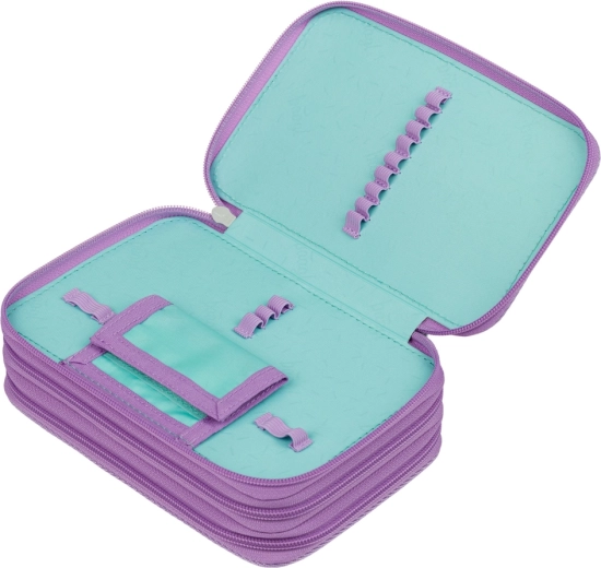 Dieses dreistöckige Schulmäppchen in der Nuance Lavender ist für maximale Übersichtlichkeit und Komfort im Alltag konzipiert. Drei separate Ebenen bieten reichlich Platz für Buntstifte, Marker, Kugelschreiber, Lineale und weitere Kleinigkeiten, während hochwertige YKK-Reißverschlüsse ein reibungsloses und dauerhaft zuverlässiges Schließen gewährleisten.