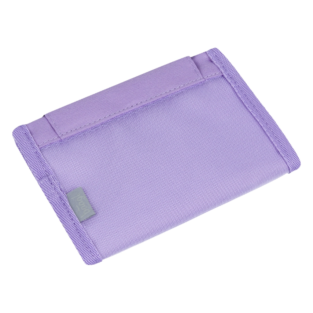 Die praktische Aufteilung umfasst einen Klettverschluss, ein separates Münzfach mit Reißverschluss sowie eine strukturierte Innenorganisation für Kleinigkeiten, Mensa-Chip oder Schlüssel. Innen gibt es ein Namensfeld zur einfachen Identifikation und einen Ring zum Befestigen von Schlüsseln oder Karabinern.