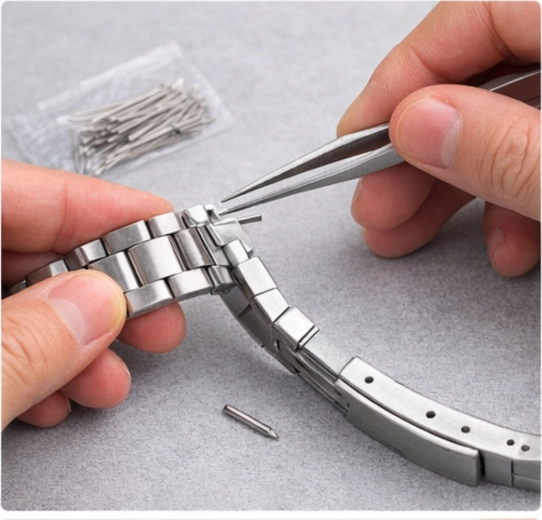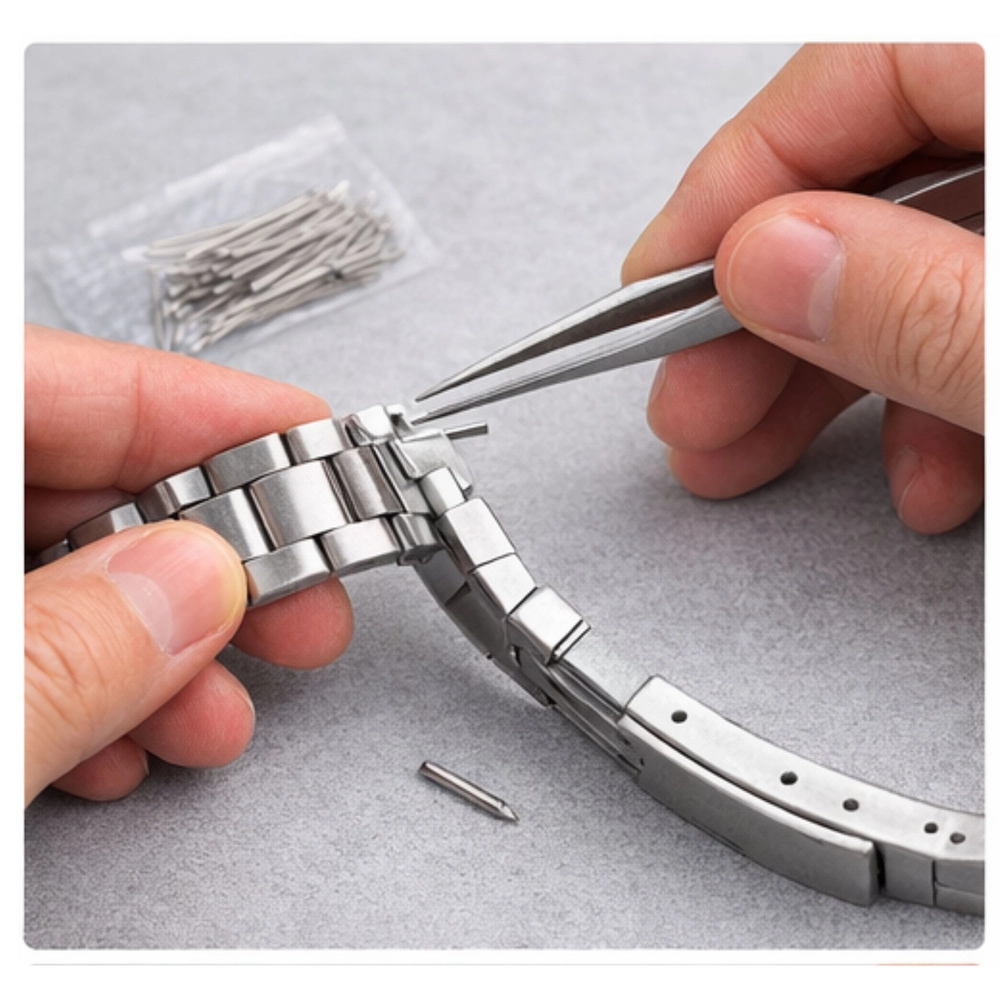 Umfangreiches Werkzeugsortiment zum Öffnen von Gehäuseböden, Kürzen von Armbändern, Wechseln von Federstegen und präziser Handhabung von Kleinteilen. Das praktische Etui hält alles übersichtlich organisiert.