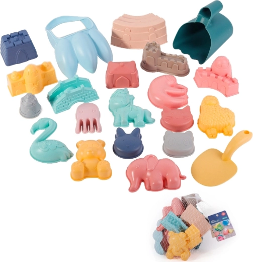 Entdecken Sie kreative Spielideen mit dem Sandspielset von WOOPIE, das Kinder mit seinem pastellfarbenen Look und dem bequemen, flexiblen Silikonmaterial begeistert. Dank der 21 Teile bauen Kinder Burgen, Formen und ganze Sandwelten – zu Hause im Garten, im Sandkasten oder am Strand.