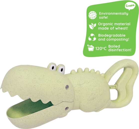 Entdecken Sie die unterhaltsame und umweltfreundliche Krokodil-Schaufel, die jeden kleinen Burgenbauer begeistert. Dank der cleveren Form nimmt sie Sand und Wasser leicht auf, transportiert und gießt sie aus und übernimmt so die Rolle von Schaufel und Eimer in einem. Ideal für den Spielplatz, den Sandkasten, den Strand und den Garten.